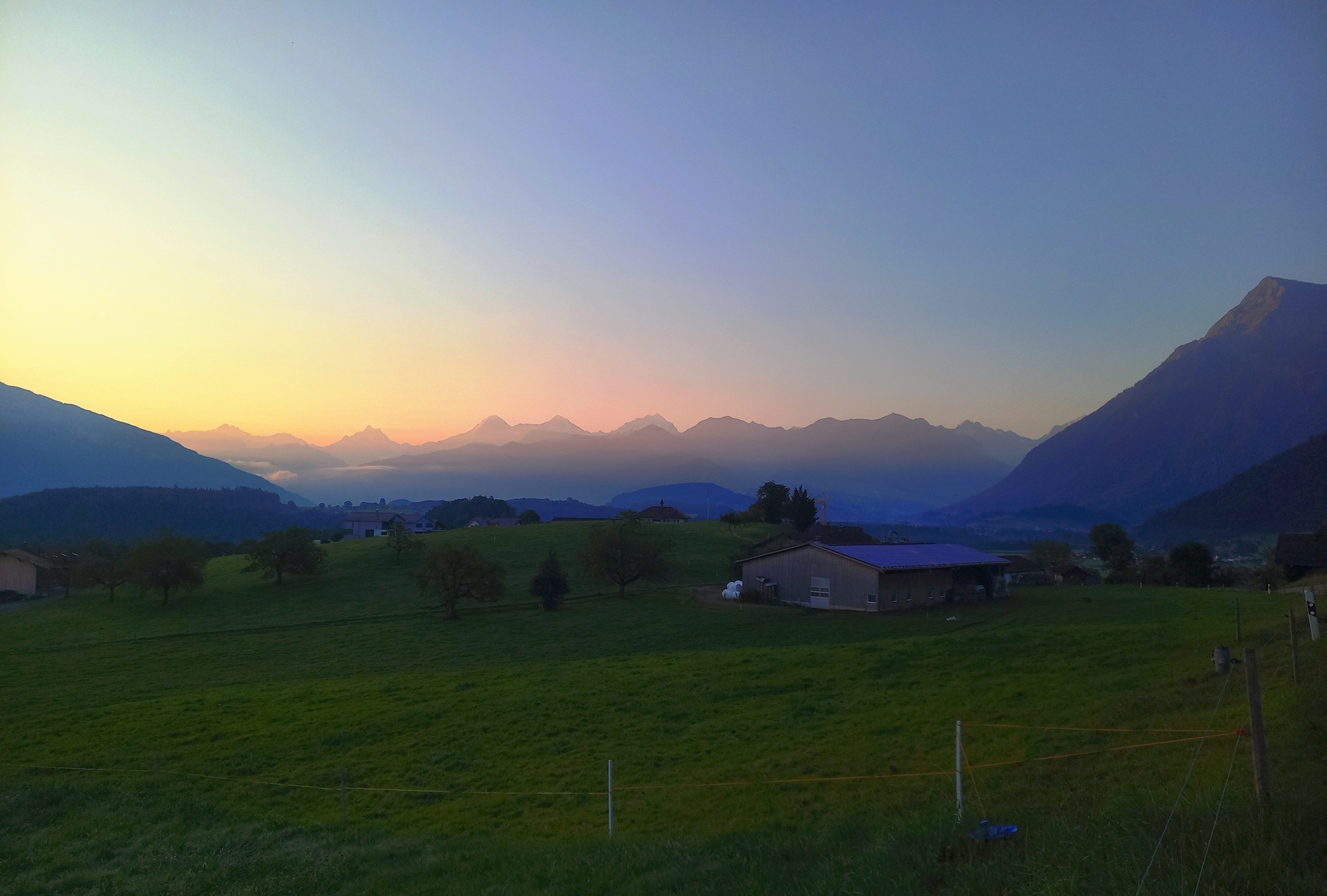 Drzo si však ešte fotím neopakovateľný východ slnka nad Alpami. Z cesty sa nedá odpojiť okamžite a vracať sa na začiatok zakázaného segmentu nemám v pláne. Zvyšujem teda tempo a v ranných uliciach mesta Thun nachádzam únikový východ pre posledné kilometre do finále tohto cyklistického zážitku.