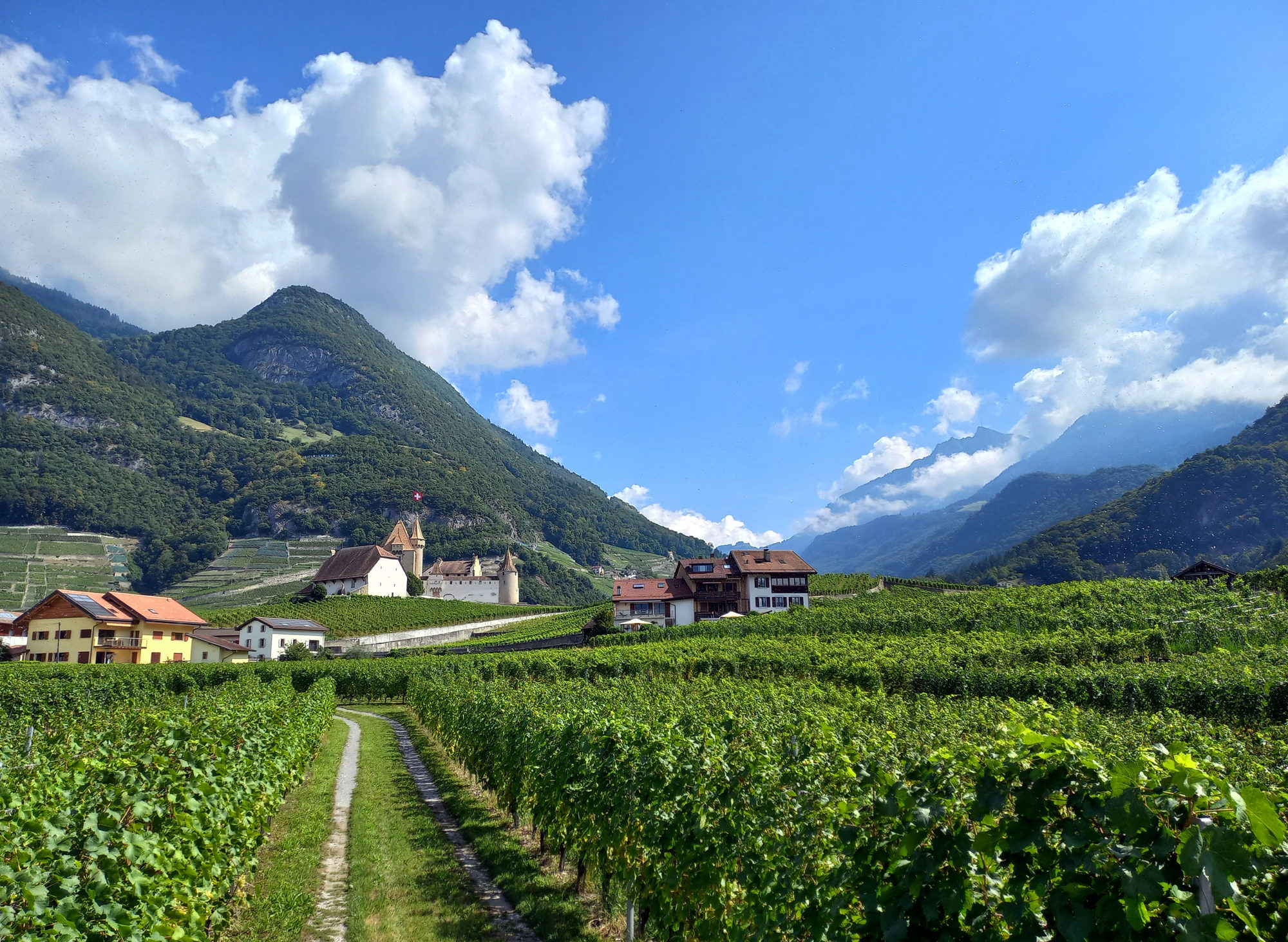 Skutočná sila tejto krajiny údolia Rhôny sa začína až tam, kde sa pásy viničov končia a začínajú skaly písať svoje optické slovo ťahajúc ho až k oblakom. Aktuálna tapeta na pozadí mojej jazdy sa s kilometrami v nohách mení každú hodinu.